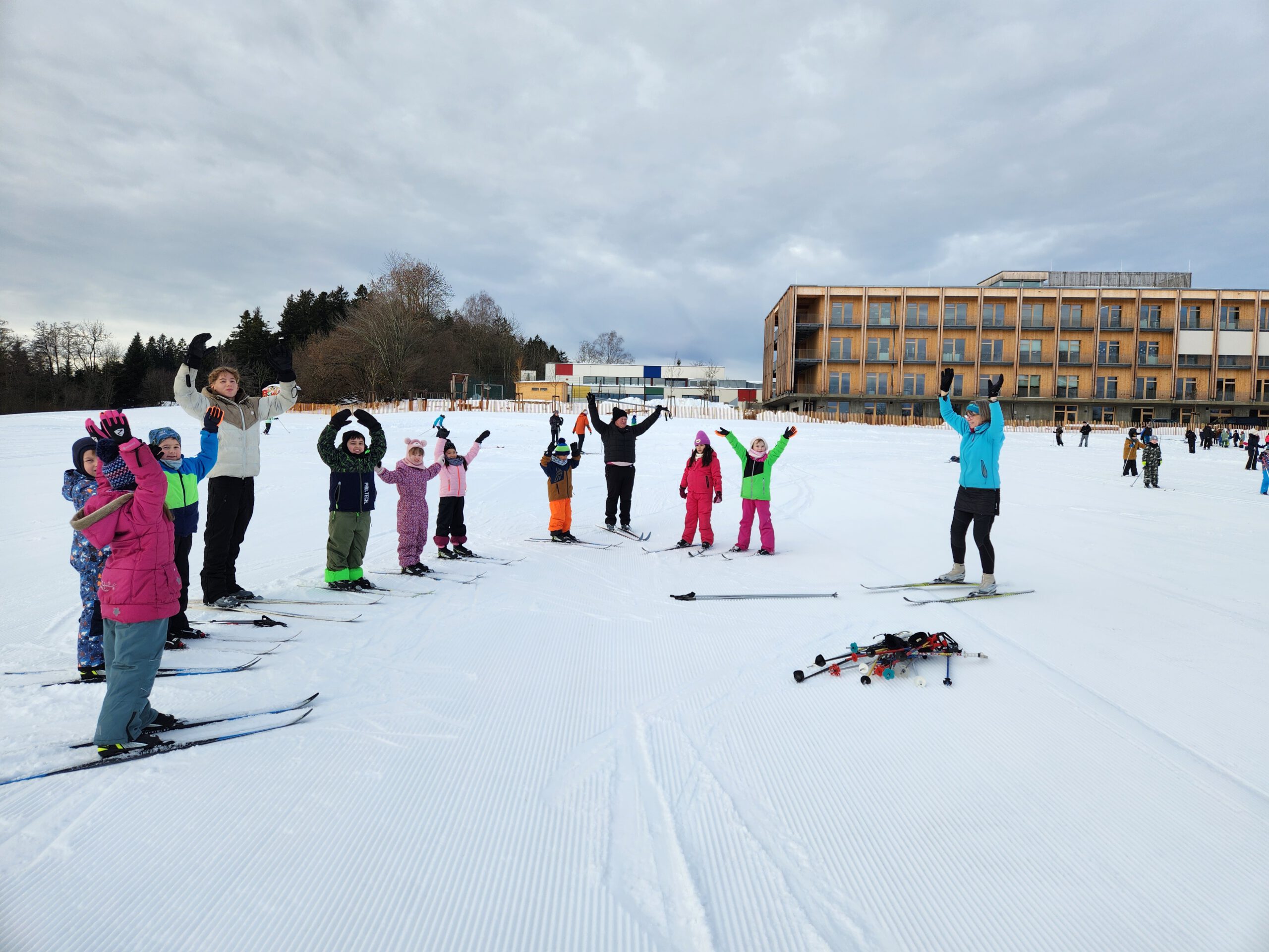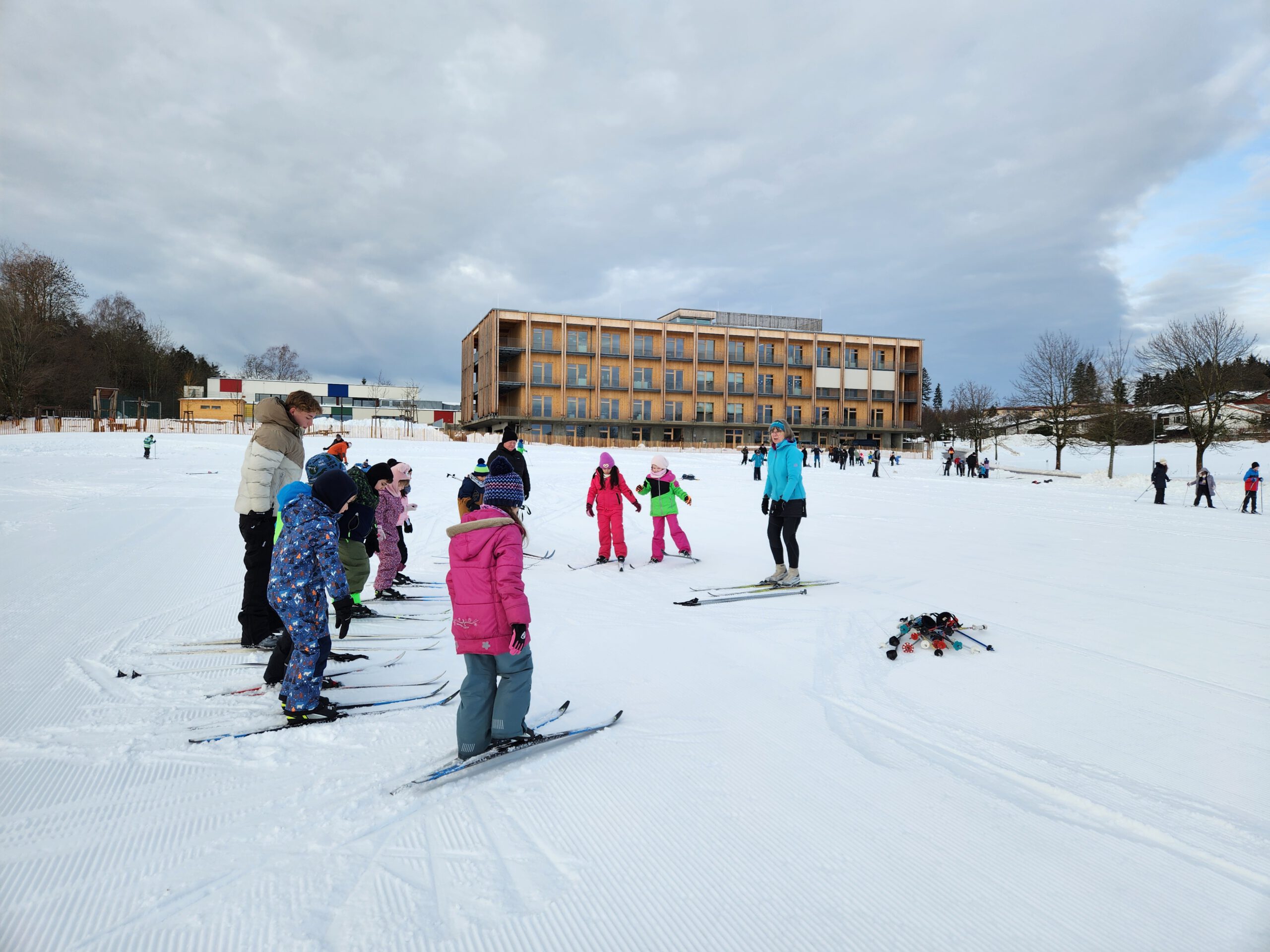 Damit allen die Teilnahme ermöglicht werden konnte, griff die Schule auf ihren umfangreichen Materialbestand zurück. Über Jahre hinweg hatte die Antonio-Huber-Schule eine beachtliche Anzahl an Langlaufskiern, alpinen Kurzskiern sowie passende Schuhe angeschafft – ein großer Vorteil, der sich nun erneut bewährte. Die Schule freut sich daher auch weiterhin über Sachspenden, insbesondere Langlaufstöcke, Schuhe für Langlauf und Alpin sowie Winterkleidung.